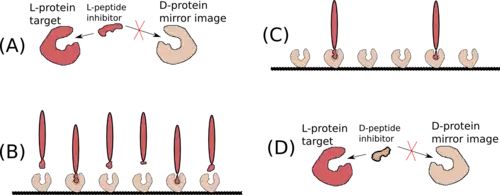 - ↑ Wiesehan K, Willbold D (September 2003). "Mirror-image Phage Display: Aiming at the Mirror". ChemBioChem. 4 (9): 811–5. doi:10.1002/cbic.200300570. PMID 12964153. S2CID 34014107.