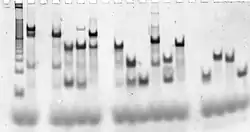 The fully formed target structures can be verified using native gel electrophoresis, which gives size and shape information for the nucleic acid complexes. An electrophoretic mobility shift assay can assess whether a structure incorporates all desired strands.[97] Fluorescent labeling and Förster resonance energy transfer (FRET) are sometimes used to characterize the structure of the complexes.[98]