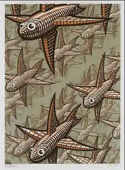 The conceptual foundation for DNA nanotechnology was first laid out by Nadrian Seeman in the early 1980s.[2] Seeman's original motivation was to create a three-dimensional DNA lattice for orienting other large molecules, which would simplify their crystallographic study by eliminating the difficult process of obtaining pure crystals. This idea had reportedly come to him in late 1980, after realizing the similarity between the woodcut Depth by M. C. Escher and an array of DNA six-arm junctions.[3][4] Several natural branched DNA structures were known at the time, including the DNA replication fork and the mobile Holliday junction, but Seeman's insight was that immobile nucleic acid junctions could be created by properly designing the strand sequences to remove symmetry in the assembled molecule, and that these immobile junctions could in principle be combined into rigid crystalline lattices. The first theoretical paper proposing this scheme was published in 1982, and the first experimental demonstration of an immobile DNA junction was published the following year.[5][6]