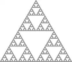 Two-dimensional arrays can be made to exhibit aperiodic structures whose assembly implements a specific algorithm, exhibiting one form of DNA computing.[17] The DX tiles can have their sticky end sequences chosen so that they act as Wang tiles, allowing them to perform computation. A DX array whose assembly encodes an XOR operation has been demonstrated; this allows the DNA array to implement a cellular automaton that generates a fractal known as the Sierpinski gasket. The third image at right shows this type of array.[29] Another system has the function of a binary counter, displaying a representation of increasing binary numbers as it grows. These results show that computation can be incorporated into the assembly of DNA arrays.[35]