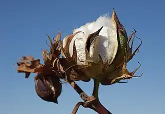 Defoliants have a practical use in the harvesting of certain crops, particularly cotton, in the United States as well as a number of other cotton-producing countries. The use of defoliants aids in the effective harvesting of cotton and finer lint quality.[3] The effectiveness of defoliant use in cotton harvesting depends on the type of defoliant(s) used, the number of applications, the amount applied, and environmental variables. Common harvest-aiding chemical defoliants include tribufos, dimethipin, and thidiazuron. According to a 1998 report by the U.S. Department of Agriculture National Agricultural Statistics Service (NASS), tribufos and thidiazuron accounted for 60% of crop area that was treated by defoliants during that crop year.[4][5]