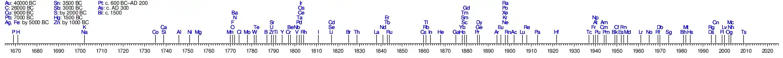 - Timeline of Element Discoveries Archived 2009-02-08 at the Wayback Machine