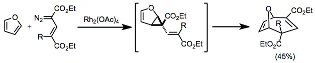 Cyclopropanation with conjugated diazo compounds produces divinylcyclopropanes that then undergo rearrangement. When cyclic starting materials are used, bridged products result.[12]