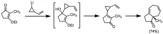 A wide variety of divinylcyclopropanes undergo the titular reaction. These precursors have been generated by a variety of methods, including the addition of cyclopropyl nucleophiles (salts of lithium,[8] or copper[9]) to activated double or triple bonds, elimination of bis(2-haloethyl)cyclopropanes[10] and cyclopropanation.[11]