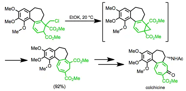In the Eschenmoser synthesis of colchicine, the rearrangement is used to form the seven-membered ring of the target.[19]