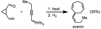 A racemic synthesis of sirenin employs a Wittig reaction to form the key divinylcyclopropane. Hydrogenation of the rearrangement product afforded the target.[20]