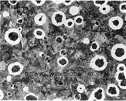 - ↑ Erfanian-Naziftoosi, H. R.; Haghdadi, N.; Kiani-Rashid, A. R. (2012). "The Effect of Isothermal Heat Treatment Time on the Microstructure and Properties of 2.11% al Austempered Ductile Iron". Journal of Materials Engineering and Performance. 21 (8): 1785–1792. Bibcode:2012JMEP...21.1785E. doi:10.1007/s11665-011-0086-y.