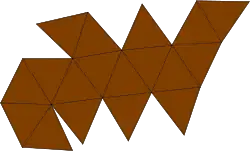 In geometry, an edge-contracted icosahedron is a polyhedron with 18 triangular faces, 27 edges, and 11 vertices.