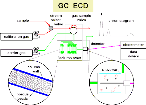 - ↑ IUPAC, Compendium of Chemical Terminology, 2nd ed. (the "Gold Book") (1997). Online corrected version: (2006–) "electron capture detector (in gas chromatography)". doi:10.1351/goldbook.E01981