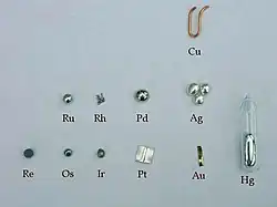 Some commercial retailers now cater to the element collecting community, even selling large quantities in sets,[4] since purchasing elements from large chemical companies is frequently prohibited or uneconomical for individuals. There are a number of specialist element providers which retail to the public over the web, sell individual element samples in addition to full and partial element sets. Many also sell elements through auction sites, such as eBay. Established specialist providers include RGB Elements, Engineered Labs,[5] Nova Elements,[6] Smart Elements,[7] SMT Metalle Wimmer,[8] PEGUYS,[9] Metallium,[10] Collect the Periodic Table, Luciteria,[11] and Onyxmet.[12]