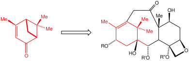 The use of the chiral pool is illustrated by the synthesis of the anticancer drug paclitaxel (Taxol). The incorporation of the C10 precursor verbenone, a member of the chiral pool, makes the production of paclitaxel more efficient than most alternatives.