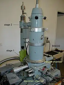 - ↑ Bogner A, Jouneau PH, Thollet G, Basset D, Gauthier C (2007). "A history of scanning electron microscopy developments: Towards "wet-STEM" imaging". Micron. 38 (5): 390–401. doi:10.1016/j.micron.2006.06.008. PMID 16990007.