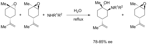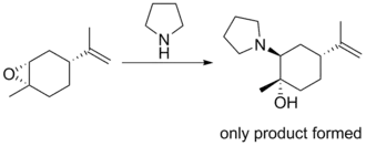 A recent example of the Fürst-Plattner rule can be seen from Chrisman et al. where limonene is epoxidized to give a 1:1 mixture of diastereomers. Exposure to a nitrogen nucleophile in water at reflux provides only one ring opened product in 75-85% ee.[4]