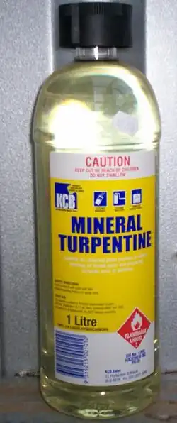 14. Mineral Spirits, often referred to as paint thinner, represent a complex petroleum distillate with a flash point range between 104 degrees F (40 degrees C) and 110 degrees F (43 degrees C). With an ignition temperature of 473 degrees F (245 degrees C) and explosive limits of 0.8% at 212 degrees F (100 degrees C), mineral spirits possess a vapor density of 3.9 and a specific gravity of 0.8. This category of clear, combustible liquid, characterized by its petroleum-type odor, encompasses midrange petroleum distillates ranging from C8 to C12 and finds application in paint thinners, oil-based stains, dry cleaning solvents, and select charcoal starter fluids.