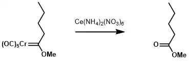 Fischer carbenes could be oxidized to the corresponding carbonyl compounds using mild oxidants such as ceric ammonium nitrate (CAN).[16]