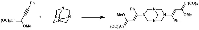 Urotropin, a weak nucleophile, could participate in a Michael addition to an alkynyl Fischer carbene, giving an interesting double addition product.[11]