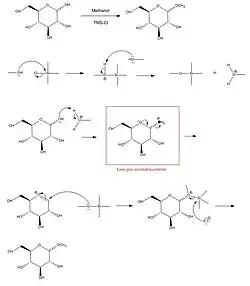 - ↑ Izumi, Minoru; Fukase, Koichi; Kusumoto, Shoichi (2002). "TMSCl as a mild and effective source of acidic catalysis in Fischer glycosidation and use of propargyl glycoside for anomeric protection". Bioscience, Biotechnology, and Biochemistry. 66 (1): 211–214. doi:10.1271/bbb.66.211. PMID 11866111.
