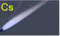Robert Bunsen invented the now-famous Bunsen burner in 1855, which was useful in flame tests due to its non-luminous flame that did not disrupt the colors emitted by the test materials.[4][1] The Bunsen burner, combined with a prism (filtering the color interference of contaminants), led to the creation of the spectroscope, capable of emitting the spectral emission of various elements.[1] In 1860, the unexpected appearance of sky-blue and dark red was observed in spectral emissions by Robert Bunsen and Gustav Kirchhoff, leading to the discovery of two alkali metals, caesium (sky-blue) and rubidium (dark red).[4][1] Today, this low-cost method is used in secondary education to teach students to detect metals in samples qualitatively.[2]