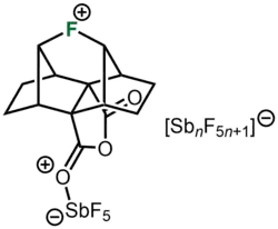 - ↑ Esteves, Pierre M.; Ramírez-Solís, Alejandro; Mota, Claudio J. A. (March 2002). "The Nature of Superacid Electrophilic Species in HF/SbF5: A Density Functional Theory Study". Journal of the American Chemical Society. 124 (11): 2672–2677. doi:10.1021/ja011151k. ISSN 0002-7863. PMID 11890818.