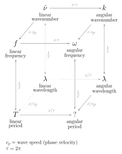 As a matter of convenience, longer and slower waves, such as ocean surface waves, are more typically described by wave period rather than frequency.[8] Short and fast waves, like audio and radio, are usually described by their frequency. Some commonly used conversions are listed below: