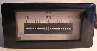 An old method of measuring the frequency of rotating or vibrating objects is to use a stroboscope. This is an intense repetitively flashing light (strobe light) whose frequency can be adjusted with a calibrated timing circuit. The strobe light is pointed at the rotating object and the frequency adjusted up and down. When the frequency of the strobe equals the frequency of the rotating or vibrating object, the object completes one cycle of oscillation and returns to its original position between the flashes of light, so when illuminated by the strobe the object appears stationary. Then the frequency can be read from the calibrated readout on the stroboscope. A downside of this method is that an object rotating at an integer multiple of the strobing frequency will also appear stationary.
