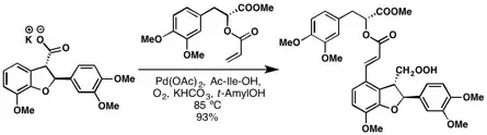 - ↑ Wang, Dong-Hui; Yu, Jin-Quan (2011-04-20). "Highly Convergent Total Synthesis of (+)-Lithospermic Acid via a Late-Stage Intermolecular C−H Olefination". Journal of the American Chemical Society. 133 (15): 5767–5769. doi:10.1021/ja2010225. ISSN 0002-7863. PMC 3085405. PMID 21443224.