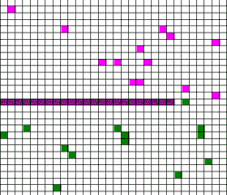 Brownian motion is the mathematical model used to describe the random movement of particles suspended in a fluid. The gas particle animation, using pink and green particles, illustrates how this behavior results in the spreading out of gases (entropy). These events are also described by particle theory.
