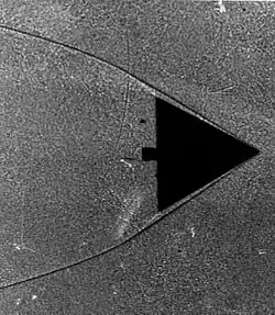Viscosity, a physical property, is a measure of how well adjacent molecules stick to one another. A solid can withstand a shearing force due to the strength of these sticky intermolecular forces. A fluid will continuously deform when subjected to a similar load. While a gas has a lower value of viscosity than a liquid, it is still an observable property. If gases had no viscosity, then they would not stick to the surface of a wing and form a boundary layer. A study of the delta wing in the Schlieren image reveals that the gas particles stick to one another (see Boundary layer section).