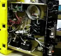 - Gas source inlet or gas switching valve – gaseous samples in collection bottles are connected to what is most commonly a six-port switching valve. The carrier gas flow is not interrupted while a sample can be expanded into a previously evacuated sample loop. Upon switching, the contents of the sample loop are inserted into the carrier gas stream.