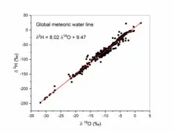 - ↑ Crawford, Jagoda; Hughes, Catherine E.; Lykoudis, Spyros (2014-11-27). "Alternative least squares methods for determining the meteoric water line, demonstrated using GNIP data". Journal of Hydrology. 519: 2331–2340. Bibcode:2014JHyd..519.2331C. doi:10.1016/j.jhydrol.2014.10.033. ISSN 0022-1694.