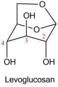 - ↑ Berman E.L., Gorkovenko, A.A., and Ponomarenko, V.A. "Structure and Polymerizability of 1,6;2,3 and 1,6;3,4¬ Dianhydrohexapyranoses" Polymer Sci. USSR, 1988, 30, 497¬-502
