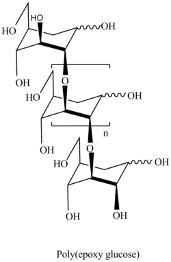 Polymerization of 3,4-epoxy levoglucosan (1,6;3,4-dianhydro-2-O-alkyl-β-D-galactopyranose) results in formation 3,4-bounded levoglucosan polymer.[11]