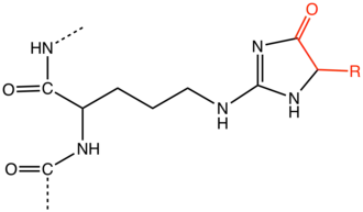 - ↑ Bellier, Justine; Nokin, Marie-Julie; Lardé, Eva; Karoyan, Philippe; Peulen, Olivier; Castronovo, Vincent; Bellahcène, Akeila (2019). "Methylglyoxal, a Potent Inducer of AGEs, Connects between Diabetes and Cancer". Diabetes Research and Clinical Practice. 148: 200–211. doi:10.1016/j.diabres.2019.01.002. PMID 30664892. S2CID 58631777.