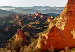 Landscape of Las Médulas, Spain, the result of hydraulic mining on a vast scale by the Ancient Romans