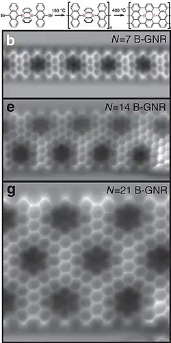 - ↑ Chen, Lingxiu; He, Li; Wang, Huishan (2017). "Oriented graphene nanoribbons embedded in hexagonal boron nitride trenches". Nature Communications. 8: 14703. arXiv:1703.03145. Bibcode:2017NatCo...814703C. doi:10.1038/ncomms14703. PMC 5347129. PMID 28276532.