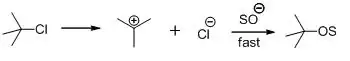 The substitution reaction of tert-Butyl chloride was chosen as reference reaction. The first step, ionizing step, is the rate determining step, SO stands for the nucleophilic solvent. The reference solvent is 80% Ethanol and 20% water by volume. Both of them can carry out the nucleophilic attack on the carbocation.[4][5]
