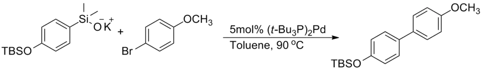 - 1 2 Denmark, S. E.; Smith, R. C.; Chang, W.-T. T.; Muhuhi, J. M. (2009), "Cross-Coupling Reactions of Aromatic and Heteroaromatic Silanolates with Aromatic and Heteroaromatic Halides", Journal of the American Chemical Society, 131 (8): 3104–3118, doi:10.1021/ja8091449, PMC 2765516, PMID 19199785