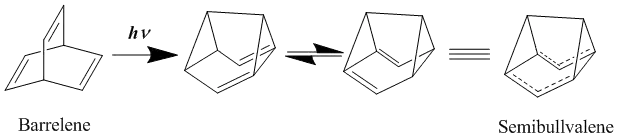 - ↑ Zimmerman, H. E.; Grunewald, G. L. (1966). "The Chemistry of Barrelene. III. A Unique Photoisomerization to Semibullvalene". Journal of the American Chemical Society. 88: 183–184. doi:10.1021/ja00953a045.