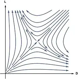 lead to one of the asymptotes or . Thus the equality of and and so of and represents a condition of unstable equilibrium, this result depending on the presence of the term representing mutual antagonism.