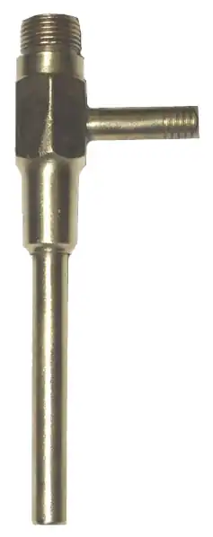 ![]() A copper aspirator. The water inlet and outlet are at the top and bottom, respectively; the air inlet is on the side. |
