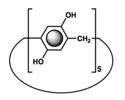 Calixarenes and related formaldehyde-arene condensates (resorcinarenes and pyrogallolarenes) form a class of hosts that form inclusion compounds.[5][20] A related family of formaldehyde-derived oligomeric rings are pillararenes (pillered arenes). One famous illustration of the stabilizing effect of host-guest complexation is the stabilization of cyclobutadiene by such an organic host.[21]