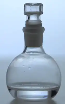 The name "hydrazine" was coined by Emil Fischer in 1875; he was trying to produce organic compounds that consisted of mono-substituted hydrazine.[10] By 1887, Theodor Curtius had produced hydrazine sulfate by treating organic diazides with dilute sulfuric acid; however, he was unable to obtain pure hydrazine, despite repeated efforts.[11][12][13] Pure anhydrous hydrazine was first prepared by the Dutch chemist Lobry de Bruyn in 1895.[14][15][16]