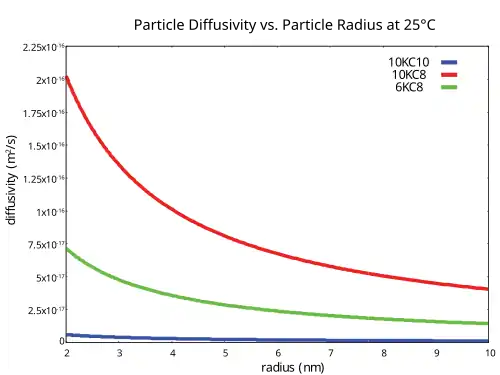 The diffusivity of spherical particles in a suspension is approximated by the Stokes–Einstein equation:[6]