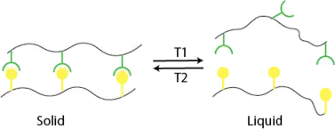 Through supramolecular chemistry, pregel solution can solidify through reversible supramolecular interactions such as host-guest interactions.[4] Such interaction can be manipulated through the mechanical force or the temperature. When energy exerted to the network is high enough, physical crosslinking point will break and the polymer will be at liquid state, after leaving the nozzle, the crosslinking can be rapidly formed to solidify the solution.