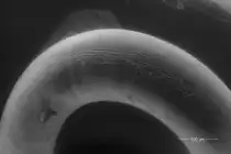 The surface morphology and shape of the cross-section can be observed via scanning electron microscope (SEM) imaging after removal of solvent.[1] Also, environmental scanning electron microscope (ESEM) can be used to observe wet hydrogel fibers.[10] But different treatments will affect the surface morphology of the hydrogel fiber drastically. If the hydrogel fiber was dried directly, a smooth surface would be obtained because of the collapse of the polymer network after the removal of the solvent.[1] If the hydrogel fiber was lyophilized, a porous surface will usually be found due to the pore-forming effect of the ice crystal. ESEM can directly observe the surface morphology. The resulting image usually indicates a smooth surface with some wrinkled formed due to the gradual loss of water.[10]