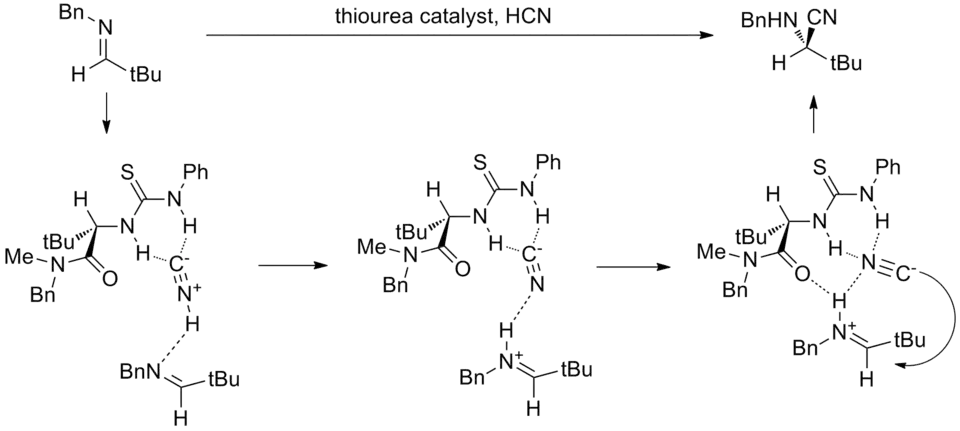 - ↑ Zuend, S. J.; Jacobsen, E. N. (September 2009). "Mechanism of amido-thiourea catalyzed enantioselective imine hydrocyanation: transition state stabilization via multiple non-covalent interactions". J. Am. Chem. Soc. 131 (42): 15358–15374. Bibcode:2009JAChS.13115358Z. doi:10.1021/ja9058958. PMC 2783581. PMID 19778044.
