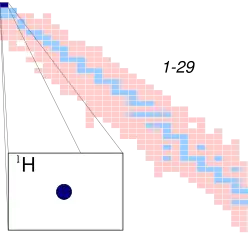A hydrogen atom is an atom of the chemical element hydrogen. The electrically neutral hydrogen atom contains a single positively charged proton in the nucleus, and a single negatively charged electron bound to the nucleus by the Coulomb force. Atomic hydrogen constitutes about 75% of the baryonic mass of the universe.[1]