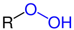 The general structure of an organic hydroperoxide with the blue marked functional group, where R stands for any group, typically organic