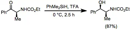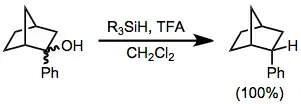 Reductions with hydrosilanes are a subset of ionic hydrogenations. In this type of reaction, carbocations are generated by the action of strong Lewis or Brønsted acids in the presence of hydrosilanes, which then transfer hydride. A typical acid is trifluoroacetic acid (TFA).