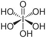 - ↑ The name is not derived from "period", but from "iodine": periodic acid (compare iodic acid, perchloric acid), and it is thus pronounced per-iodic /ˌpɜːraɪˈɒdɪk/ PUR-eye-OD-ik, and not as /ˌpɪərɪ-/ PEER-ee-.